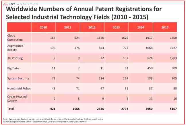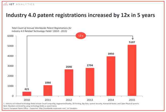 主要結(jié)論:與"工業(yè)4.0"相關(guān)的專利注冊(cè)總數(shù)在短短五年內(nèi)激增了12倍。