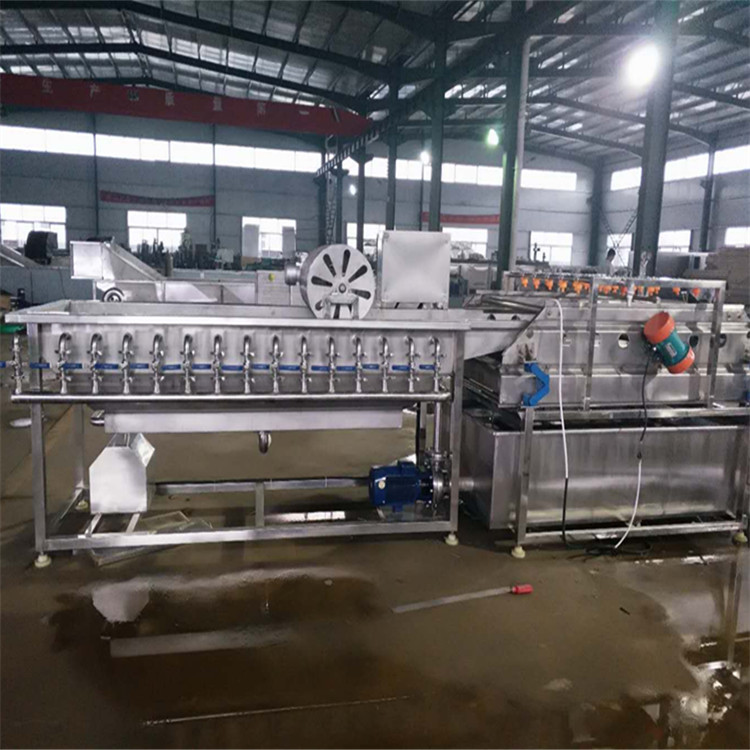 該設備適用于小的絲條狀或小塊狀物料的柔性清洗。分為清洗池和振動瀝水機兩部分,殺菌劑可直接投入清洗池中。設備整體為SUS304不銹鋼制作,耐腐蝕性高,完全符合我國食品衛(wèi)生安全要求。該線全部采用快接方式連接,閥門控制,通過調(diào)節(jié)閥門,控制水流速度以及氣泡大小。